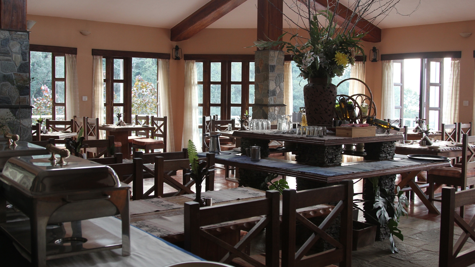 The resort is surrounded by chestnut, orange and other fruit trees, as well as coffee and cardamom bushes. The beautiful natural surrounds are echoed throughout the resort, creating a nourishing and healing environment, from traditional Ayurvedic remedies at the Himalayan Spa to a mountain spring water pool, and homegrown produce served at the restaurant.