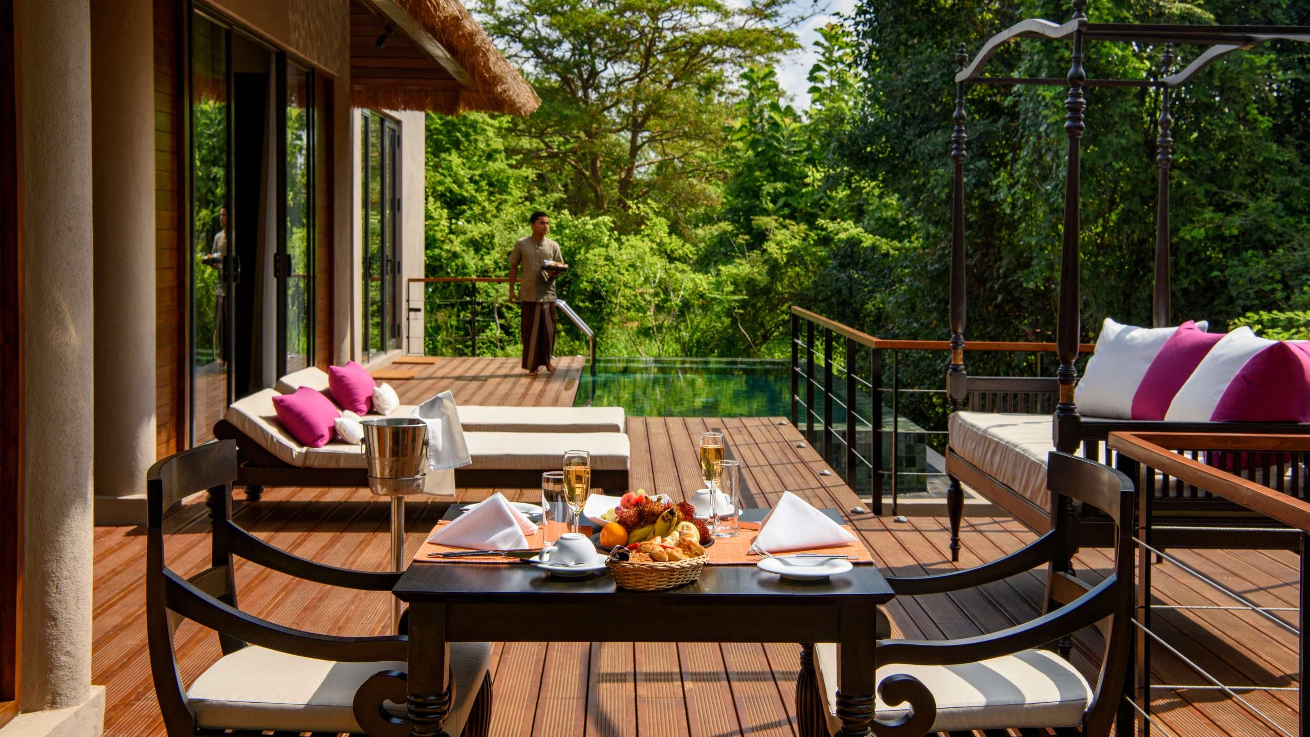 At the heart of the hotel is a 150-year-old mansion which is surrounded by 25 villas, each with a private deck, plunge pool and huge windows looking out over paddy fields, forest or the lake. The two-bedroom Nikawewa Villa with separate living and dining room is perfect for families. The further two room categories are the Deluxe Pool Villa and Ulgalla Pool Villa.