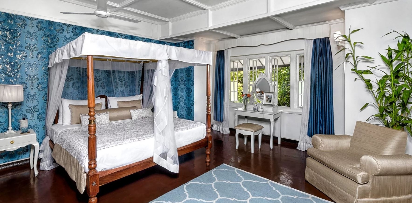 The house, built by a British planter over 100 years ago, features sumptuous decor, with each of the five rooms displaying its own unique character.