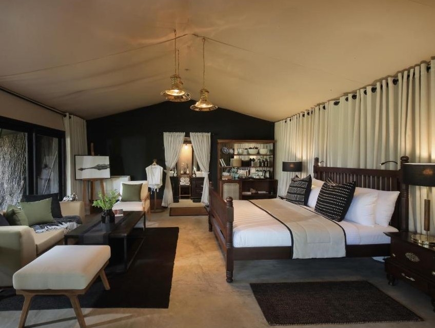 A fire, bar, lounge and dining area sit at the camp’s heart. Dining is a convivial experience, with chefs serving up authentic Sri Lankan cuisine, an endless array of colourful and fragrant curries and sambols, and Western dishes.