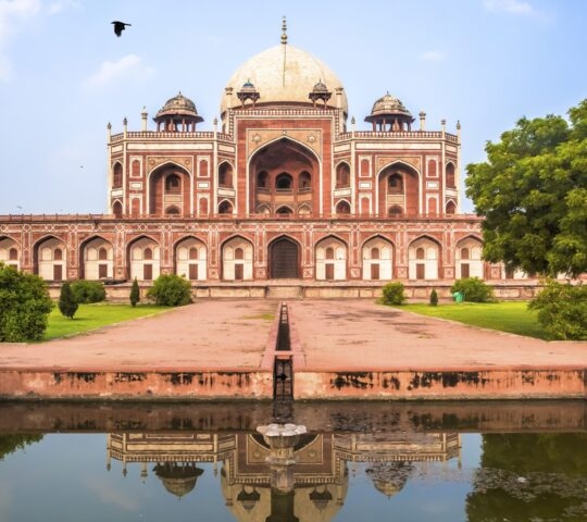 Located in the eastern part of Delhi, Humayun’s Tomb is one of the best preserved Mughal monuments. The tomb was built under the instruction of his widow, Hamida Banu Begum, in 1565. The tomb is strongly influenced by Persian architecture and is sat in the centre of a Persian-style chaharbagh garden, divided into four main parts to resemble the paradise garden described in the Quran. From the 17th to the 19th centuries the garden was gradually filled with the tombs of Humayun’s descendants and his entourage. Several Mughal emperors are even buried inside Humayun’s mausoleum.