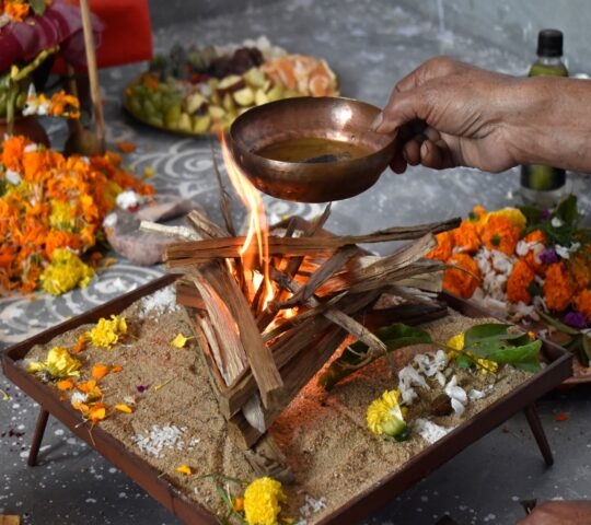 Puja temple ceremony and market visit