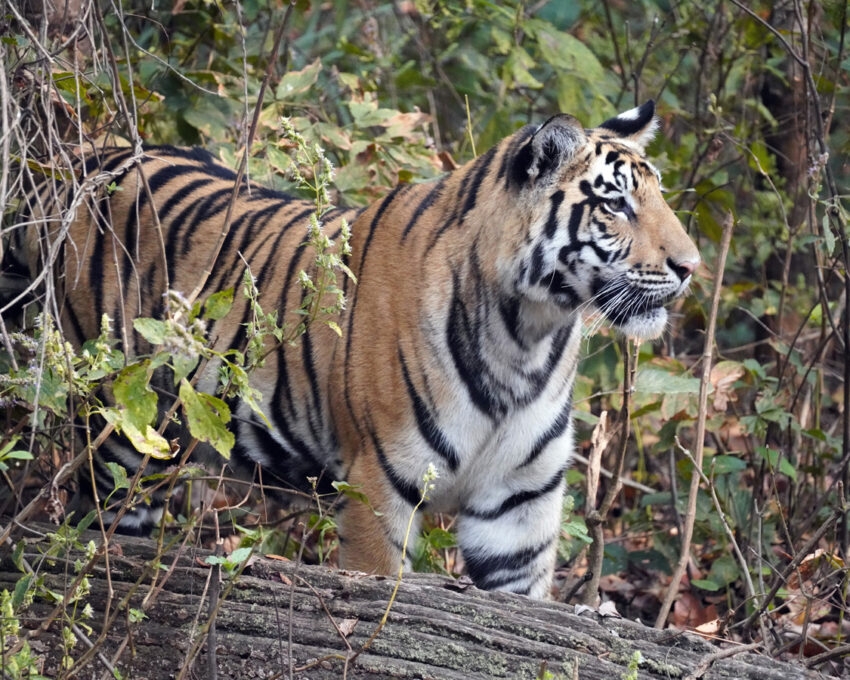 Explore a range of habitats here, from rugged hills to wide open valleys splitting grasslands flanked by Sal forests and bamboo thickets. There is a rich biodiversity to be found, and along with tiger you’ll be looking for on this safari, the park is home to leopard, sloth bear, dhole (Asian wild dog), the four-horned chousingha, immense gaur Indian bison, spotted deer, nilgai and even the occasional Indian wolf. There are also well over 150 bird species to spot, including pairs of graceful sarus cranes.
