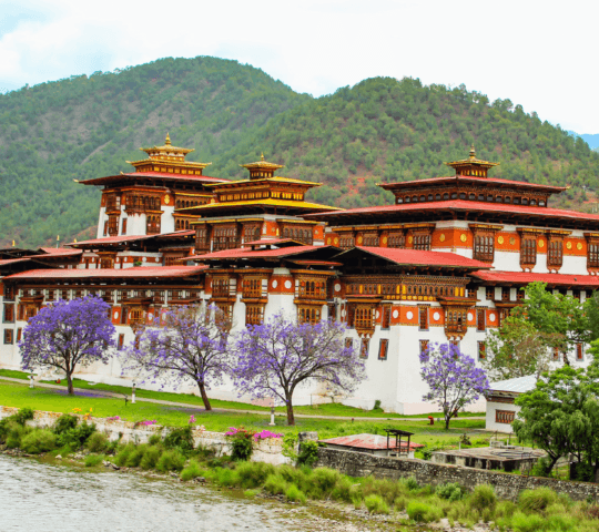 Enjoy a private scenic transfer to Punakha, Bhutan’s former capital, as you journey through breathtaking landscapes. Travel along winding mountain roads, passing lush valleys, traditional villages and serene rivers, with panoramic views of snow-capped peaks and verdant forests.