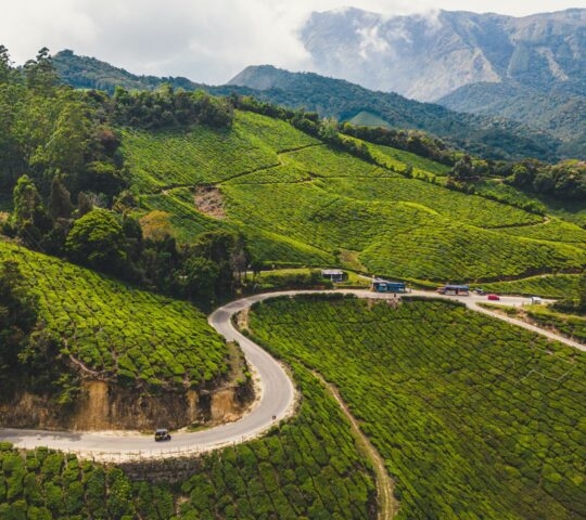 Next, you’ll head to Munnar, a hill station nestled in the Western Ghats, known for its expansive tea plantations. This area boasts cool mountain air and a refreshing climate. The landscape is a sea of green, dotted with winding paths through the estates, making it one of India’s most picturesque destinations.