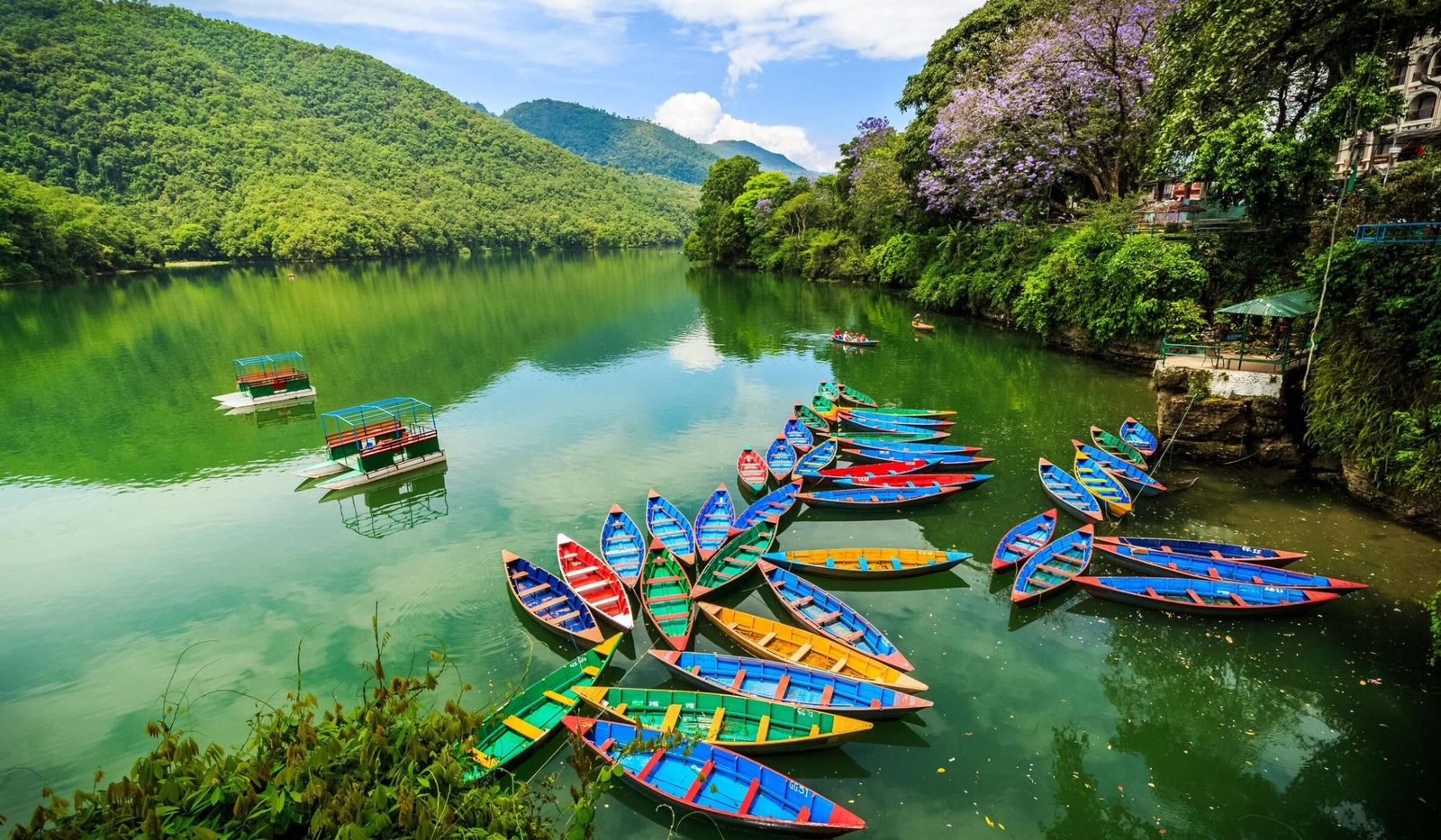 Your next destination is Pokhara, where the glistening Phewa Lake invites you to head out onto its calm waters onboard a brightly painted, traditional wooden rowing boat.