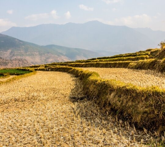 Starting at Phuntsopelri Palace, hike alongside beautiful rice fields and stop at 14th century Do-Jagalam and Ritsa village. Enjoy magnificent views from Tse-lhakhang and follow the ridge all the way to Temakha village through to your lunch destination at Jawona village. After lunch, hike to the villages of Jangu, Yuengu and Gumgang following trails through forests of oak and pine, before reaching a breathtaking viewpoint over Punakha Dzong.