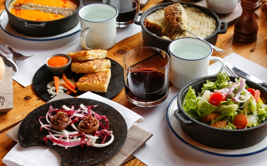 Estancia Cristina boasts 20 rooms, thoughtfully divided among five cosy cabins. Each cabin houses four private suites adorned with warm fabrics and expansive picture windows, perfect for soaking in the spectacular scenery. The heart of the estancia is the main lodge, where you’ll find a charming restaurant offering a curated wine menu featuring selections from premier Argentinian wineries, all while enjoying a breathtaking 360-degree view of the Río Caterina valley.