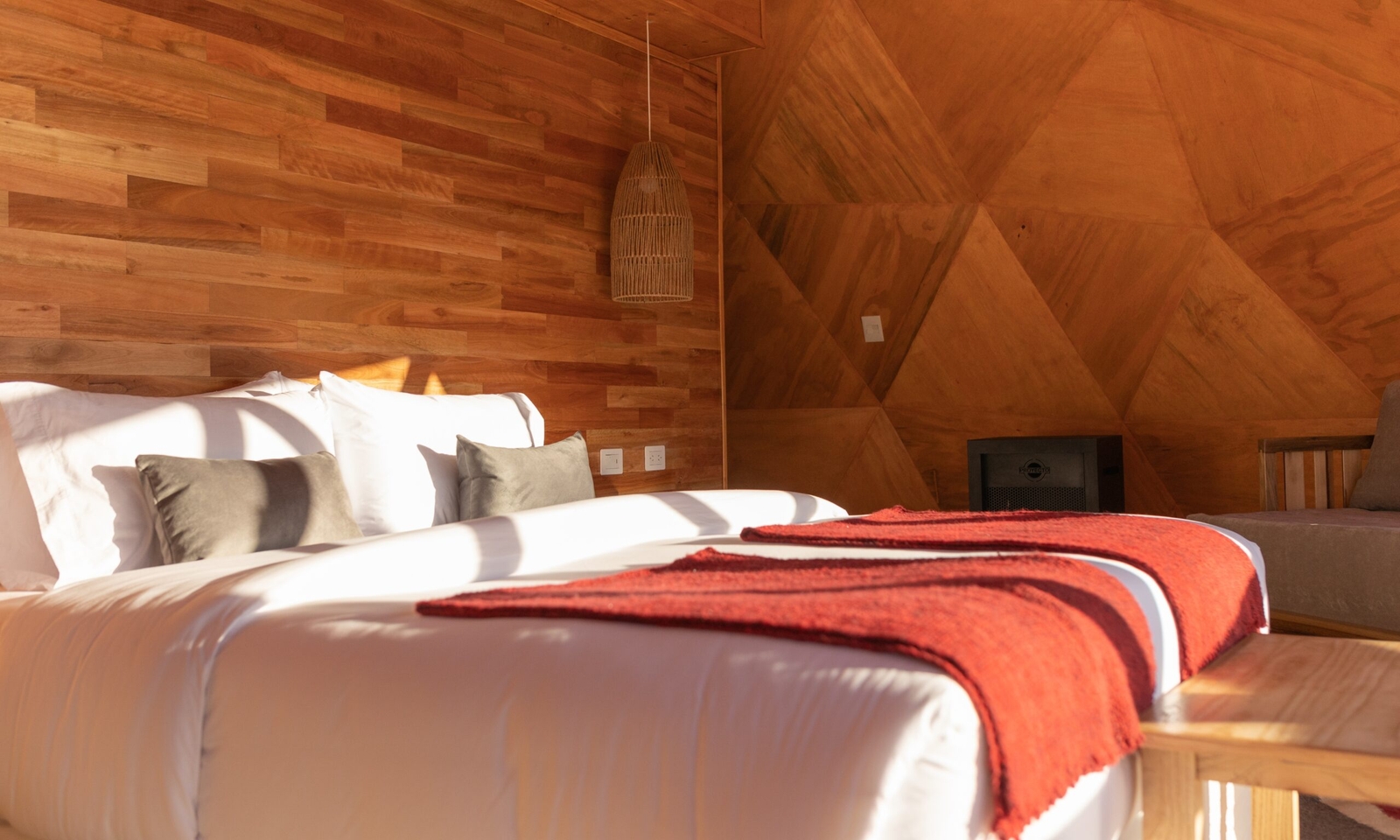 Perched by the edge of the Brazo Rico area of The Perito Moreno Glacier is where you’ll find Pristine El Calafate Luxury Camp. The camp is comprised of six wooden eco-domes that feature king-size beds that can be separated into twin beds, along with armchair-type sofa beds for a third person.