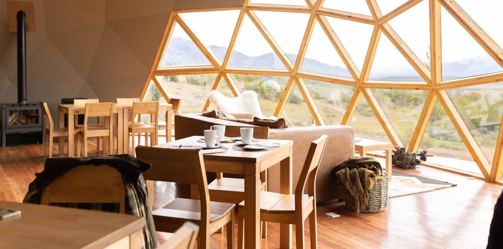 Within the domes you’ll also find a seating area with an armchair, stove, minibar and private bathroom with shower. Head out onto the deck to soak in the incredible views of the Patagonian steppe or take a dip in the heated outdoor tub. The camp’s accommodations are located at Estancia Dos Lagos. During your stay you’ll indulge on gourmet cuisine prepared by Chef Mariana García del Río, who’ll offer you signature dishes.