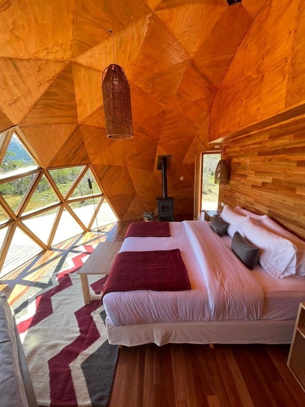 Perched by the edge of the Brazo Rico area of The Perito Moreno Glacier is where you’ll find Pristine El Calafate Luxury Camp. The camp is comprised of six wooden eco-domes that feature king-size beds that can be separated into twin beds, along with armchair-type sofa beds for a third person.