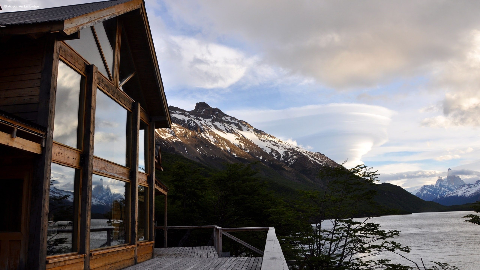 Located 37 kilometres from El Chalten this remote lakeside lodge is part of an area called the Estancia Rio de Las Vueltas and is surrounded by 700 hectares of countryside, evergreen forests, 900 metres of shoreline, and epic views of the towering peaks of Mount Fitzroy Mountain, Mount Torre and Vespignani Glacier.