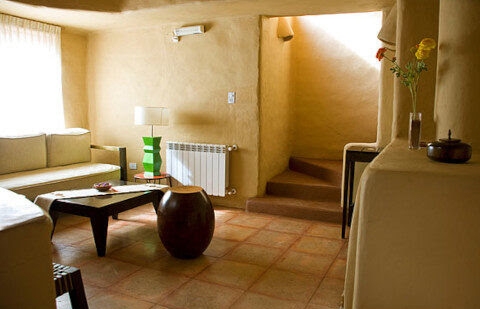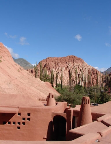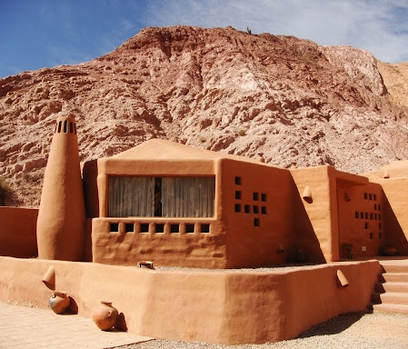 You’ll find the boutique cabin complex of Los Colorados in the picturesque town of Purmamarca, at the foot of the Cerro de Siete Colores. It is distinguished by an architectural style that is a fusion of Andean with contemporary details. The earthy exterior design and colours blend harmoniously with the surrounding hills and landscape. The structure’s rounded edges and reed roofs follow the irregularities of the palo santo beams.