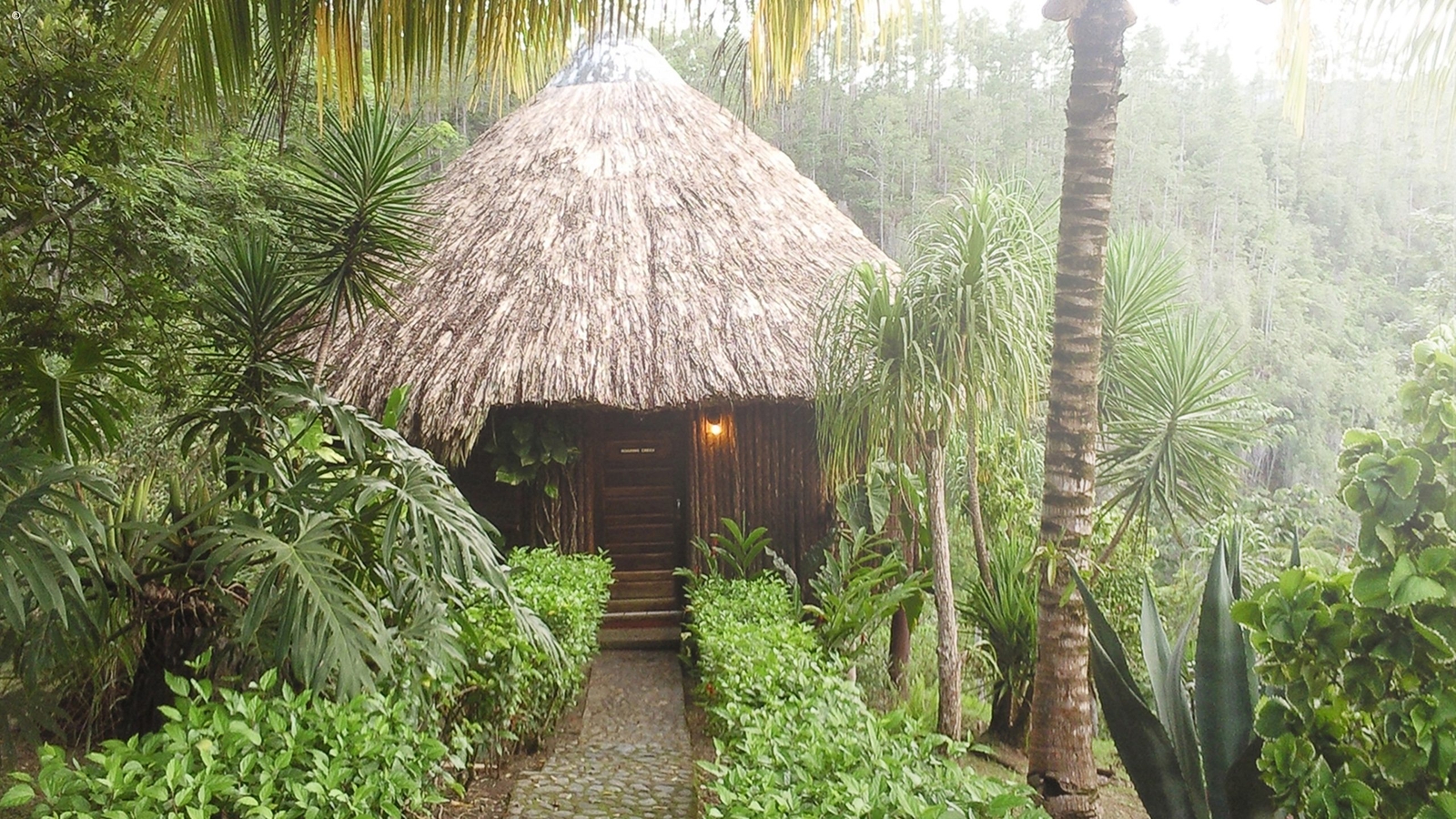 Idyllic rainforest lodge overlooking mystic waterfalls