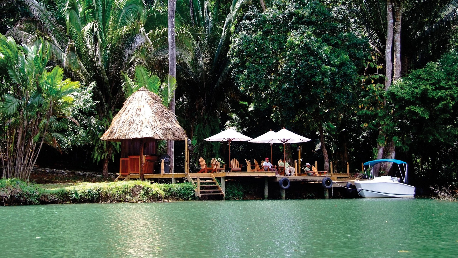 Though very much in the rainforest, the boathouse at the banks of the lush river at the base of the hill, houses a speedboat that can whisk you to the calm clear waters of the Caribbean for snorkelling, swimming and fishing in the cayes.