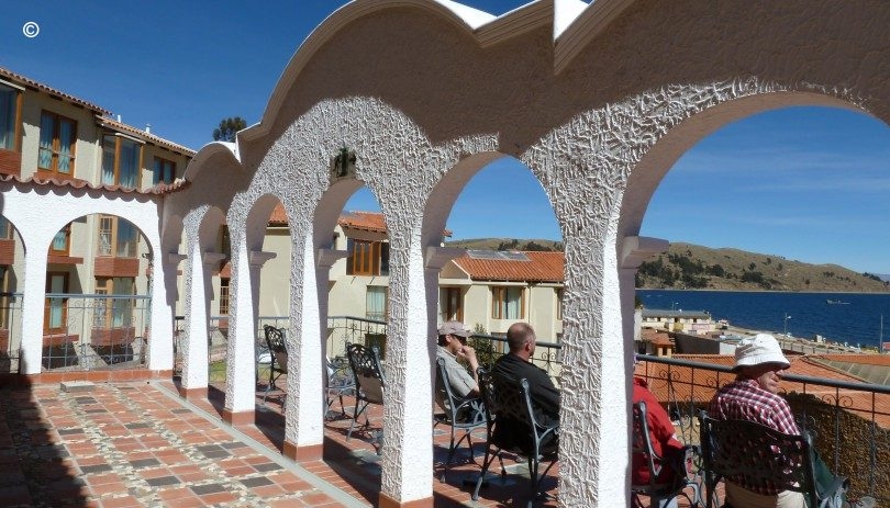 Overlooking the waters of Lake Titicaca
