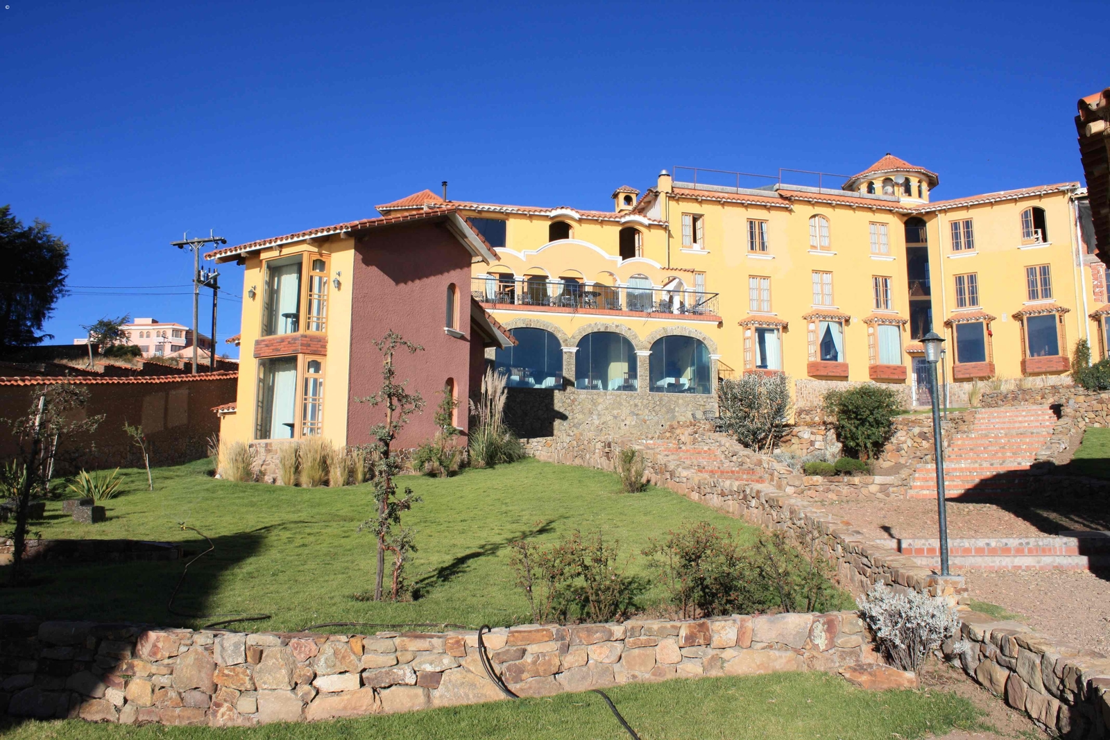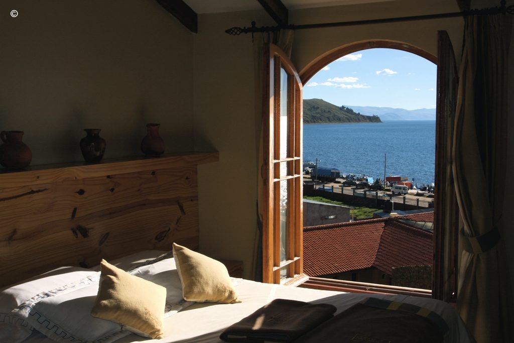Hotel Rosario Del Lago sits perched overlooking the waters of Lake Titicaca, just a short walk north of town. One of the smartest options in Copacabana, the hotel has charming modern rooms with solar-heated showers, double-glazed windows and lake views.