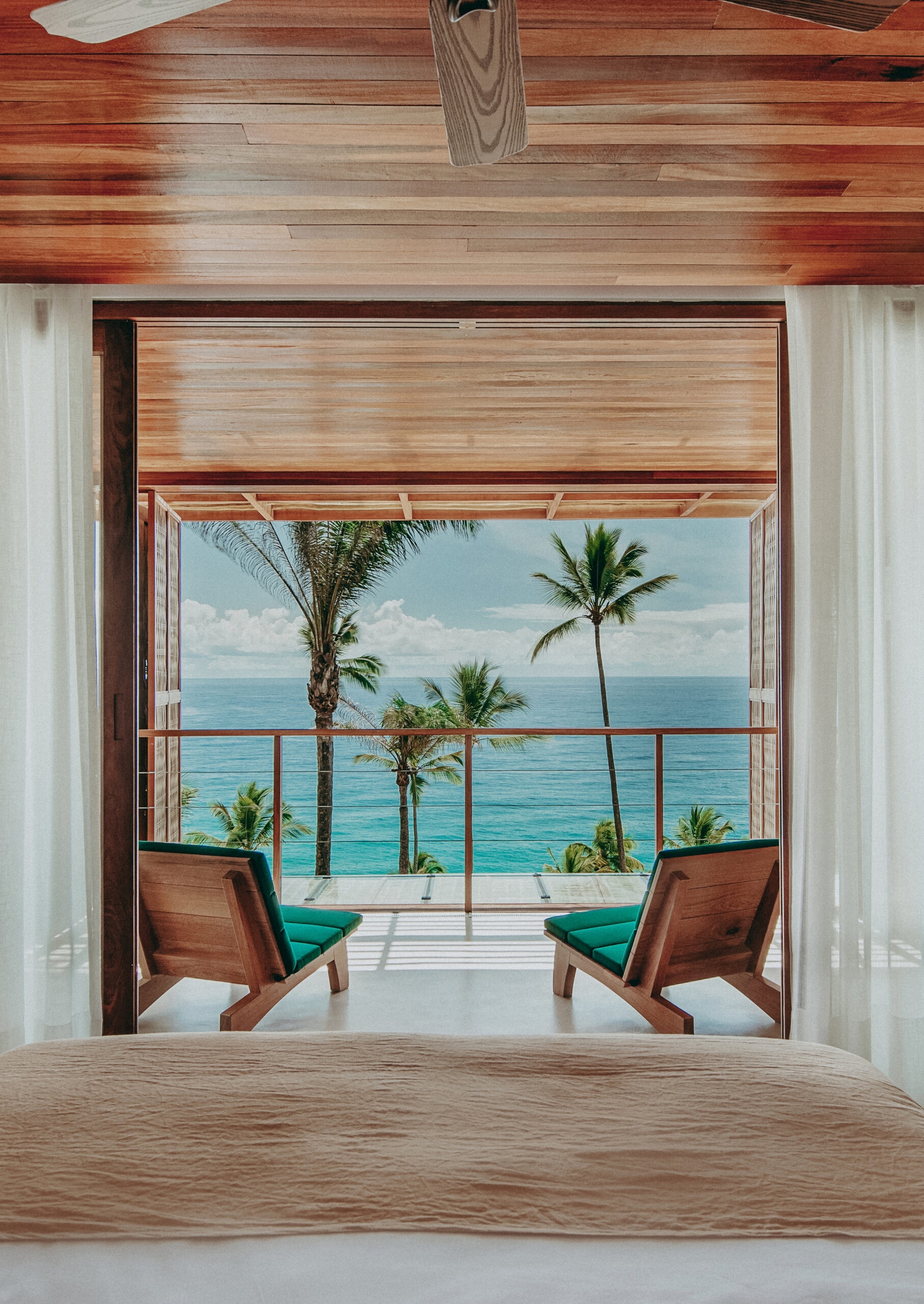 Overlooking the palm-lined coast of Itacaré in the state of Bahia, Barracuda Hotel & Villas offers a refined, barefoot atmosphere in Brazil’s Atlantic rainforest. The hotel’s 17 suites open to verandas facing either the sea or the forest, with interiors that blend minimalist Scandinavian design with Bahian warmth through wood, stone and woven textures. An infinity pool, restaurant and bar sit above the bay with uninterrupted ocean views. Barracuda Villas offer a more private escape in three- and four-bedroom homes with personal hosts, kitchens and infinity pools set in the rainforest.