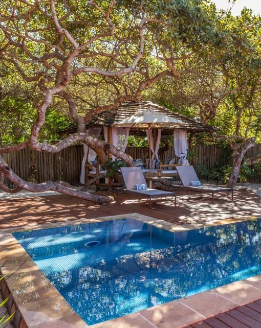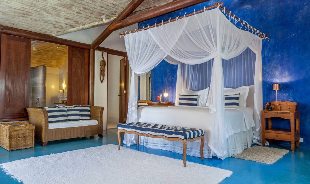 There are 28 charming accommodation options tucked away in the lush gardens. They have been designed with comfort and sophistication in mind, with canopy beds, air-conditioning and local artworks completing the picture. While away the hours on your balcony drinking in sea or garden views, and in some rooms, unwind in your Jacuzzi or private patio pool.