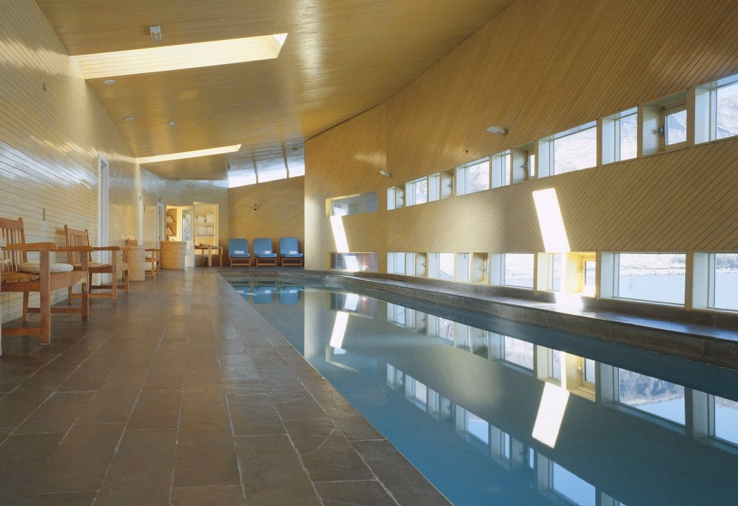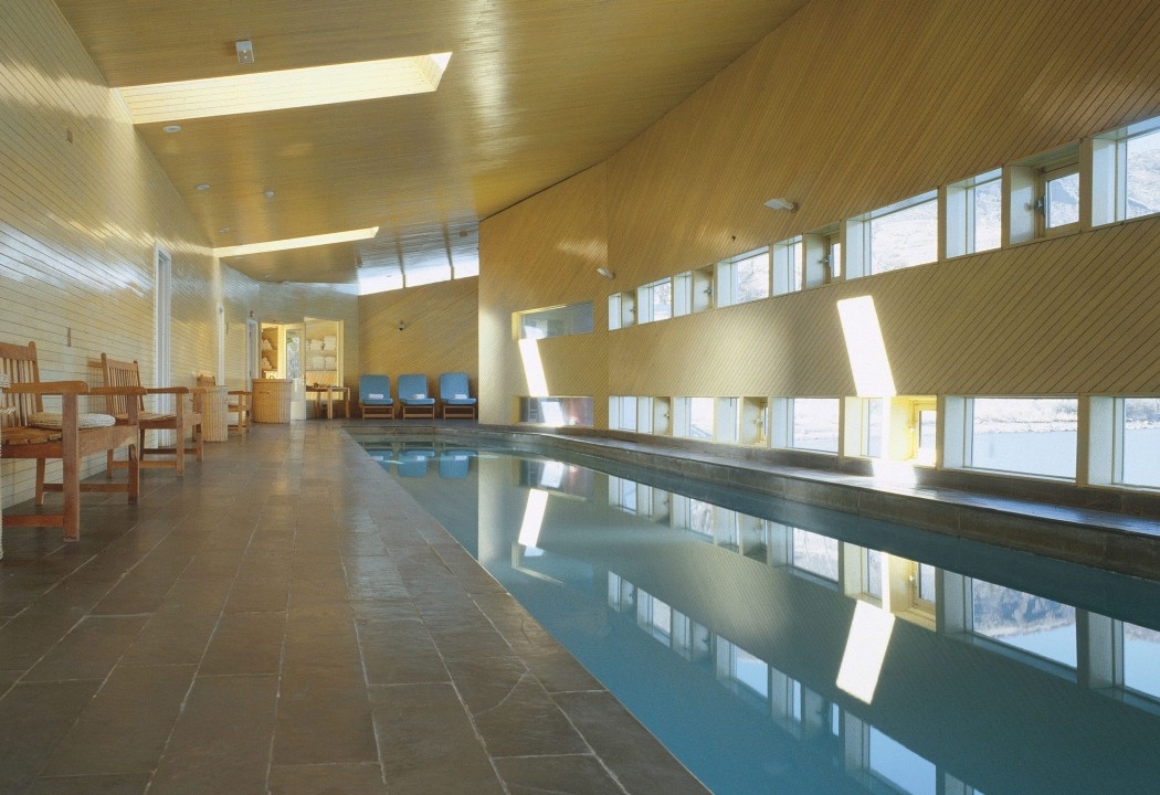 Simple and cool from the exterior, things could not be more different once inside. There are large picture windows everywhere (even in the bathrooms) to make the most of the stunning vistas surrounding the hotel. Much of the furniture is hand crafted from local wood and slate, and there are many little design touches to make things more comfortable. The hotel also has a large indoor swimming pool and outdoor jacuzzis.
