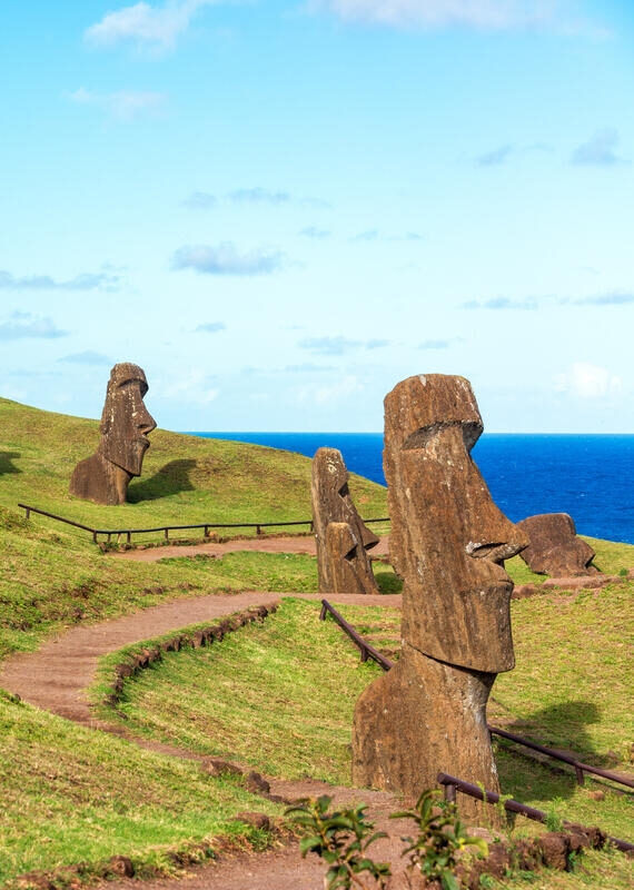 Easter Island is most famous for its mysterious monolithic stone statues. Known as moai, these statues are believed to have been carved by the Rapa Nui people sometime between 1250 and 1500, depicting the faces of their ancestors.