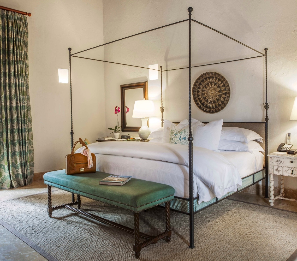 The hotel itself, comprising three connecting 17th-century homes, evokes a bygone age with classic stucco exteriors and beautiful traditional touches inside. Rooms and suites spotlight dark wood-beamed ceilings, four-poster beds, stone floors and elegantly tiled bathrooms. But natural fabrics alongside a palette of soft blues and greens add a fresh, contemporary edge.