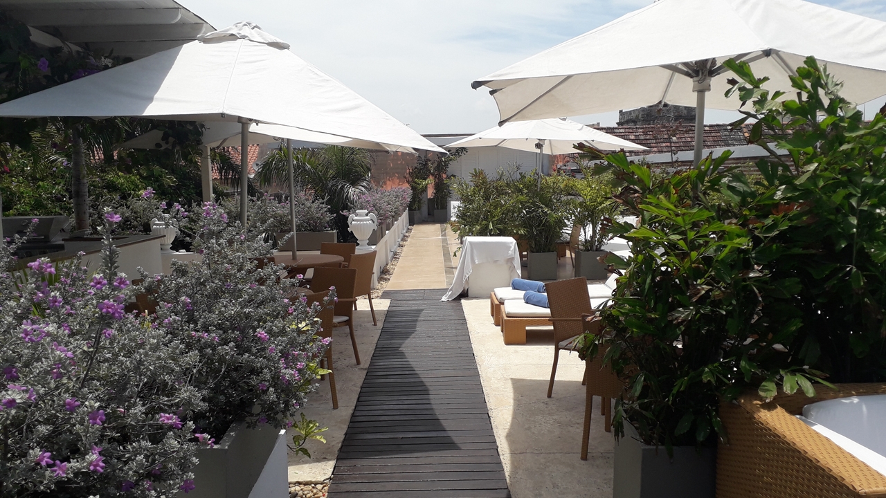 There is a small lounge area downstairs where guests will enjoy breakfast. As you head further into the hotel there is a small pool then a spectacular roof terrace filled with beautiful plants and featuring another small swimming pool. This is a wonderful place to relax and watch the sun set over Cartagena.