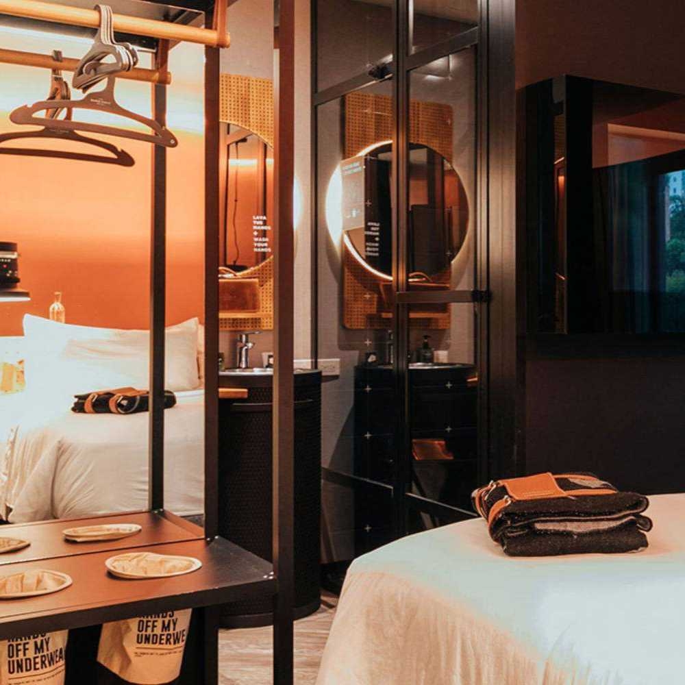 Despite the industrial feel there are plenty of plants and trees within the main courtyard, and continued into the main lobby creating outdoor, indoor atmosphere. The hotel boasts 5 exclusive restaurants: Egeo serving Greek food, Mekong for fans of Thai, Big Bao for takeaway and Click Clack Kitchen, a responsible and healthy cuisine option. There’s also a gym and access to wellness treatments.