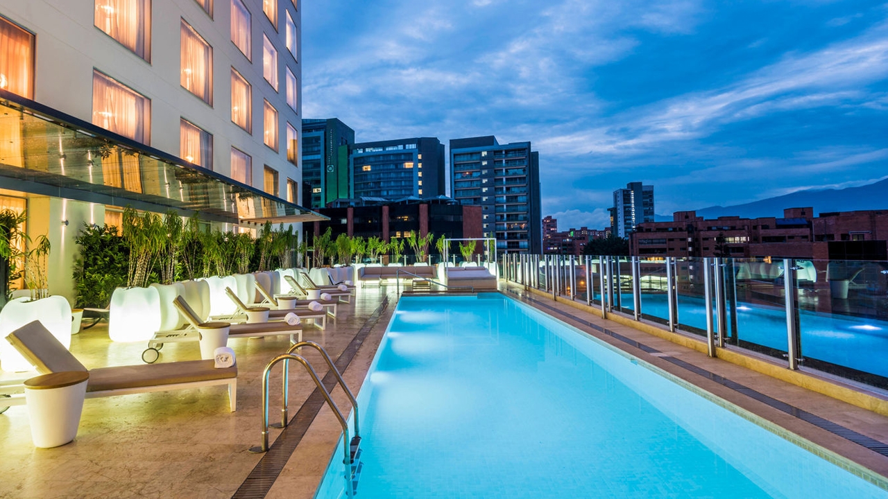 There are 166 rooms and suites, bright and spacious with a crisp, clean finish. Dining options at the hotel are great. Start your day with a wonderful breakfast in the large, light-filled lounge then enjoy a relaxed lunch or dinner at The Market or Nau, an Asian restaurant serving excellent sushi and noodles. There is a terrace at Nau where you can enjoy the balmy Medellin evenings.
