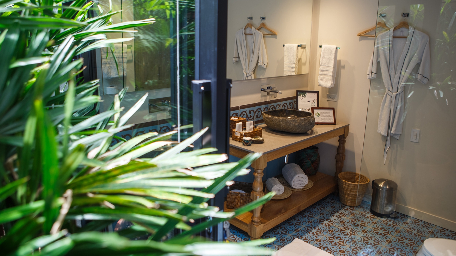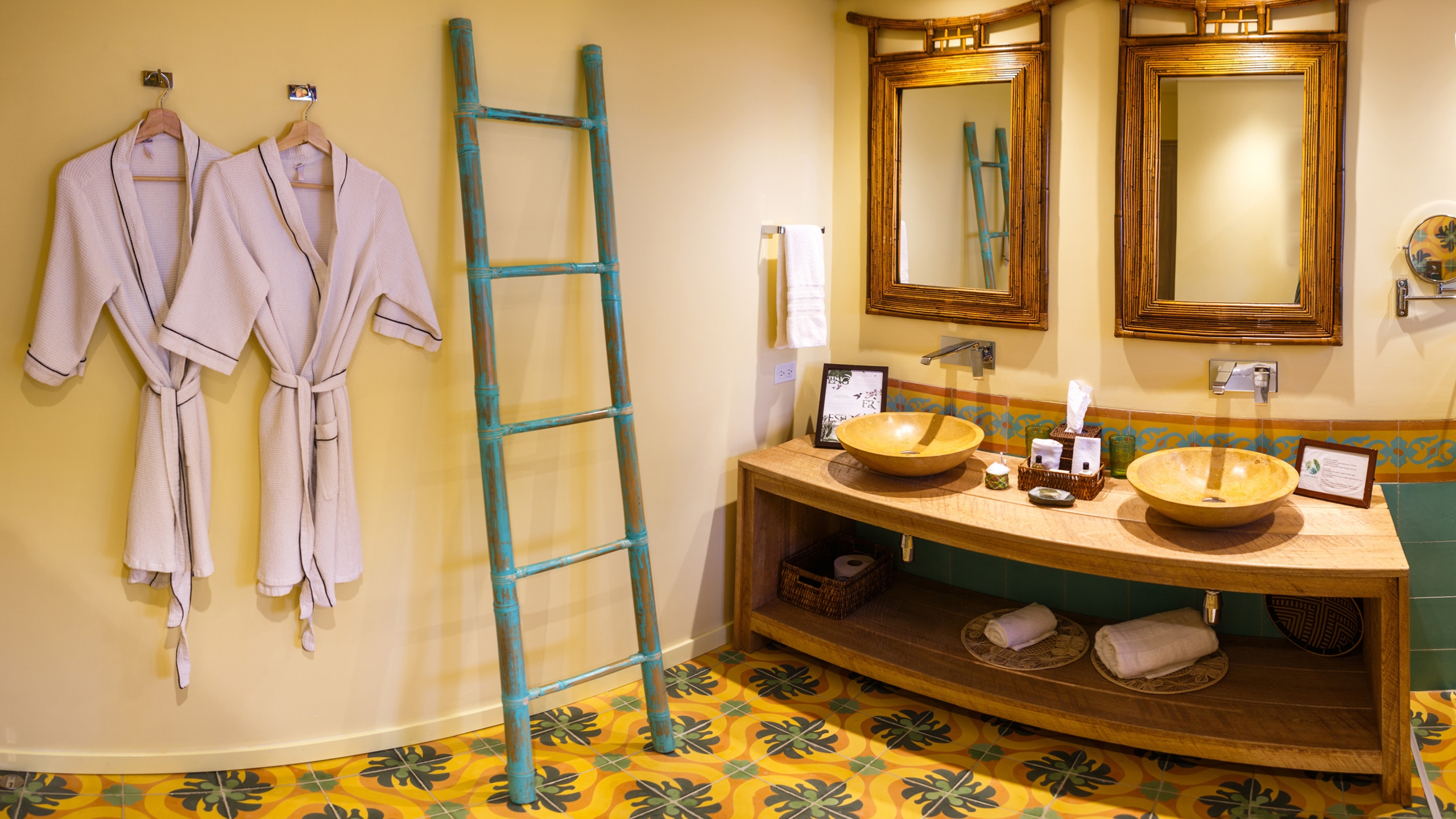 There is a small lounge and library decorated with handicrafts from across Colombia and a beautiful terrace where guests can enjoy breakfast. The lush gardens are filled with wild orchids and mango trees and a winding pathway lined with avocado and orange trees leads you down to a small decking area with a Jacuzzi.