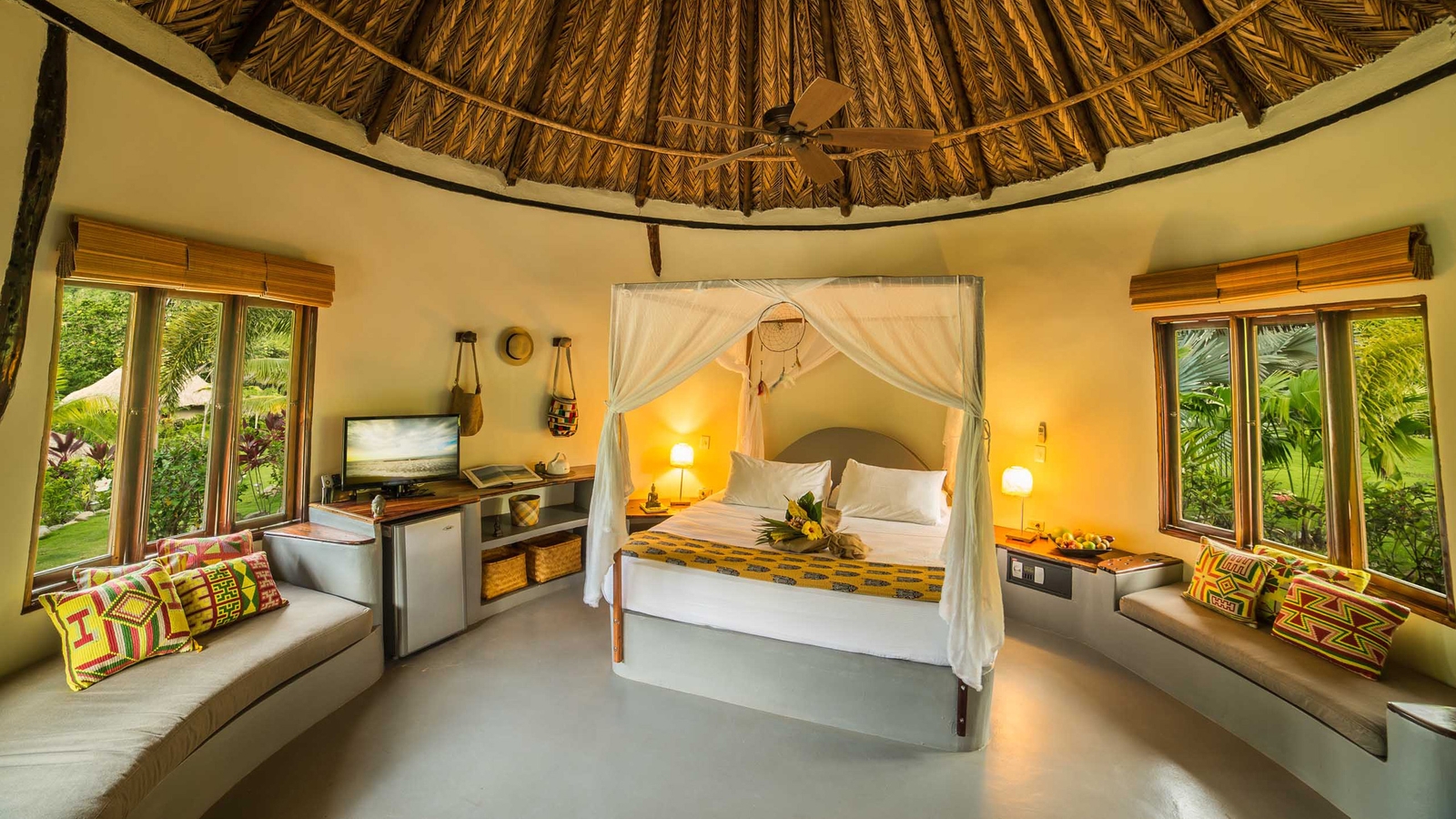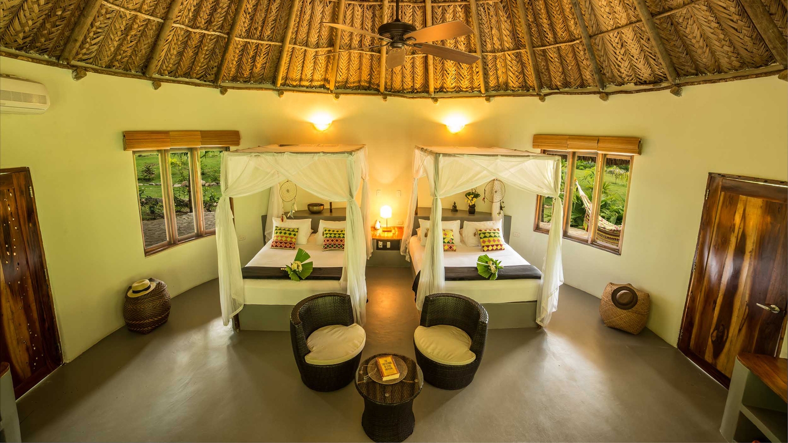 There are five circular cabanas with thatched palapa roofs. Rooms feature large beds with mosquito nets, air conditioning and fans and a separate bathroom with outdoor shower. Outside each cabana there is a small cold water Jacuzzi and hammocks. In the rooms and throughout the reserve, you’ll find colourful handicrafts made by the local indigenous tribes, including the Kogi, Arahuacos, Kankuamos and Wiwa tribes.