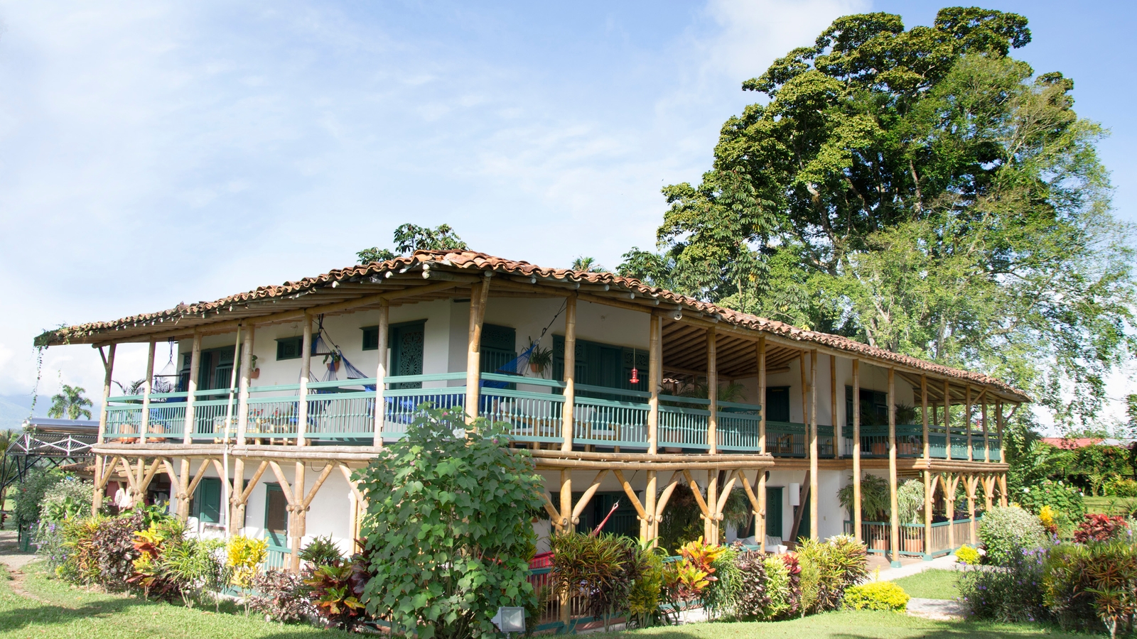 Surrounded by the verdant forest, meandering rivers and with the Central Andes Range in the distance, the Hacienda Bambusa is a traditional farm that raises cattle and grows cocoa, ginger, plantain, bananas and tangerines.