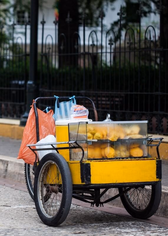 Street food from Colombia is a whole category in and of itself. Some of the most iconic and internationally beloved Colombian treats can be purchased from street vendors and market stalls throughout the country, whether you’re browsing La Perseverancia market in Bogotá or wandering the streets of Cartagena’s Old City.