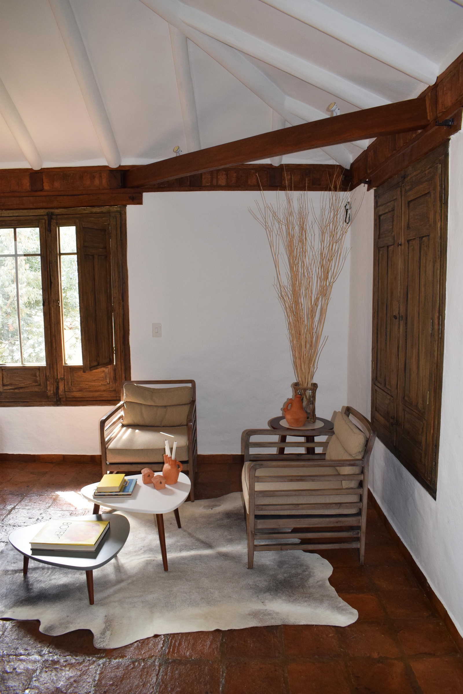 Local materials were used in the construction of the building, preserving the original architecture and maintaining features such as the stone walls, wooden beams and clay tiles. Some of the doors and windows were rescued from a convent in the nearby town of Chiquinquira.