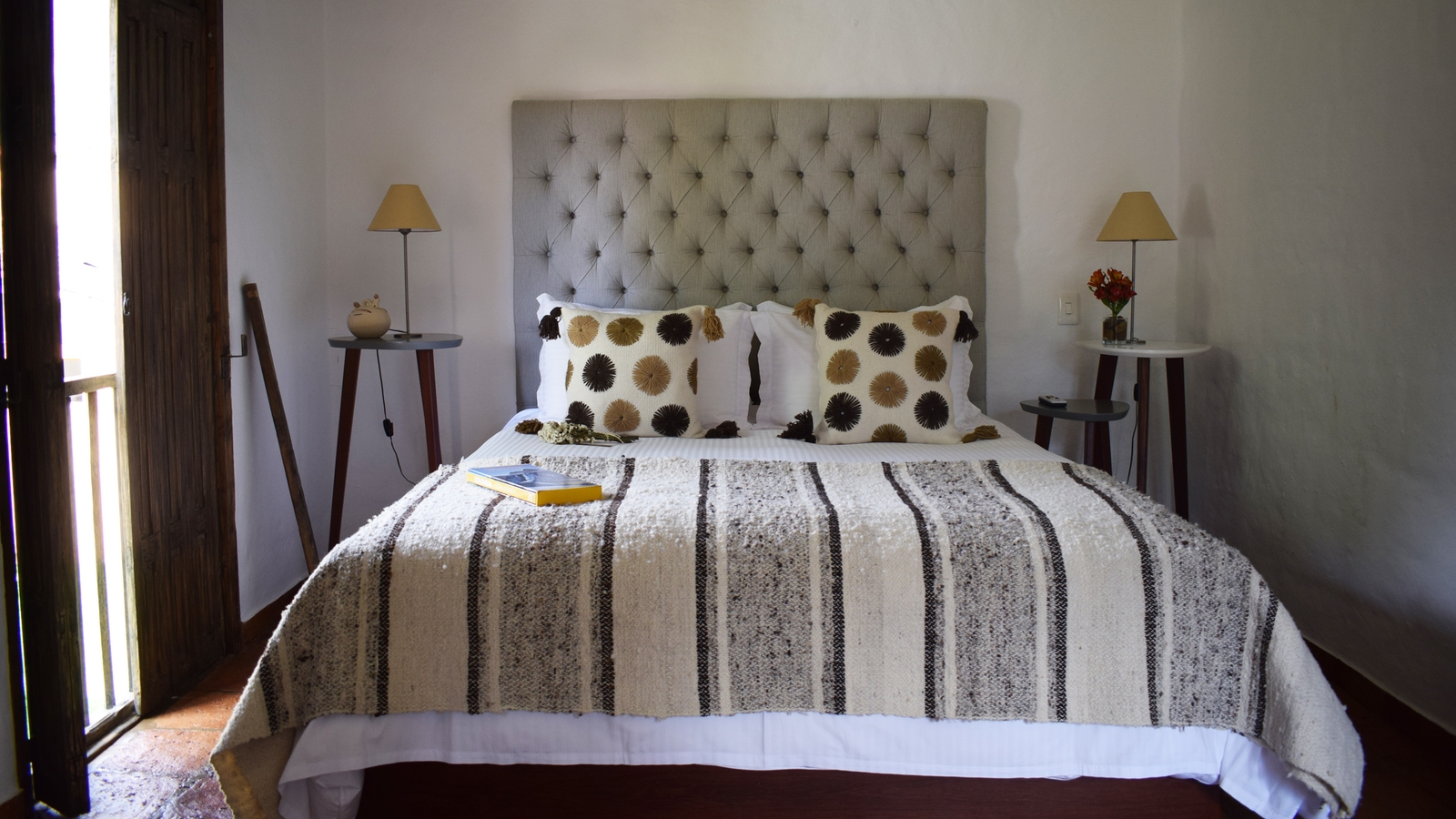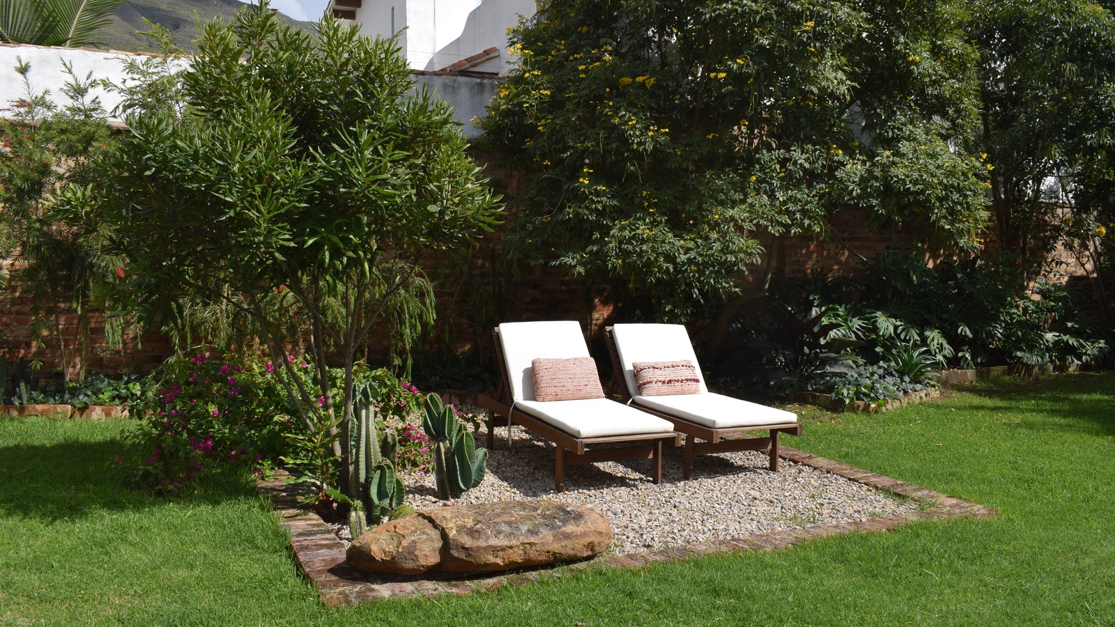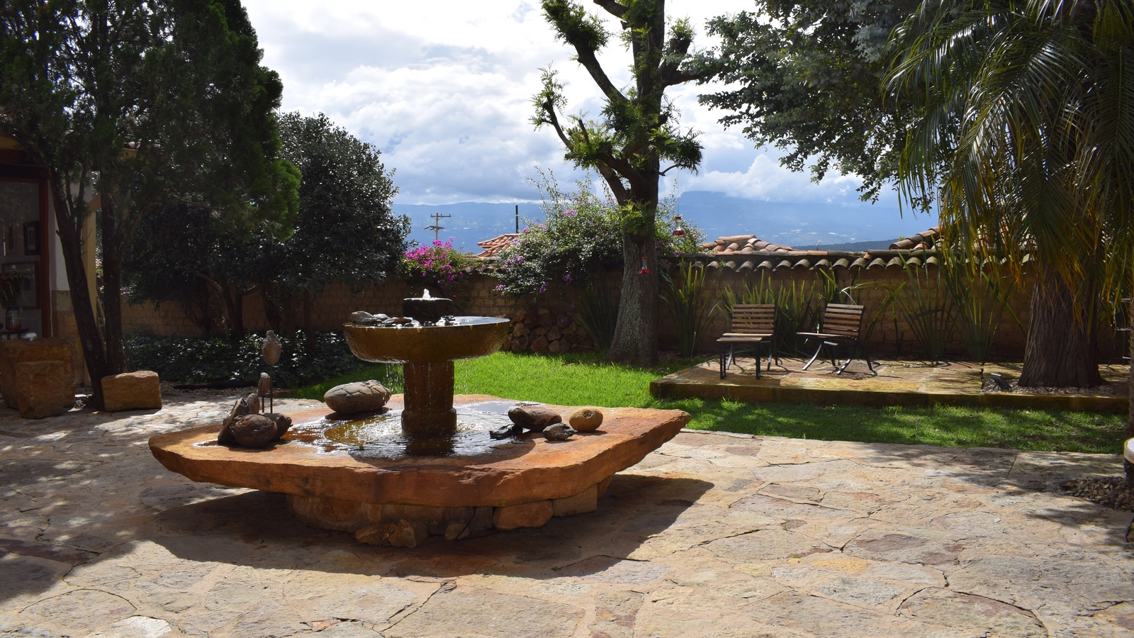 Seven bright rooms are filled with local artwork and textiles and shuttered windows that flood the space with light. Surrounded by pretty gardens this tranquil hideaway is the perfect place to relax with a cup of Colombian coffee while the birds come and splash in the fountain.