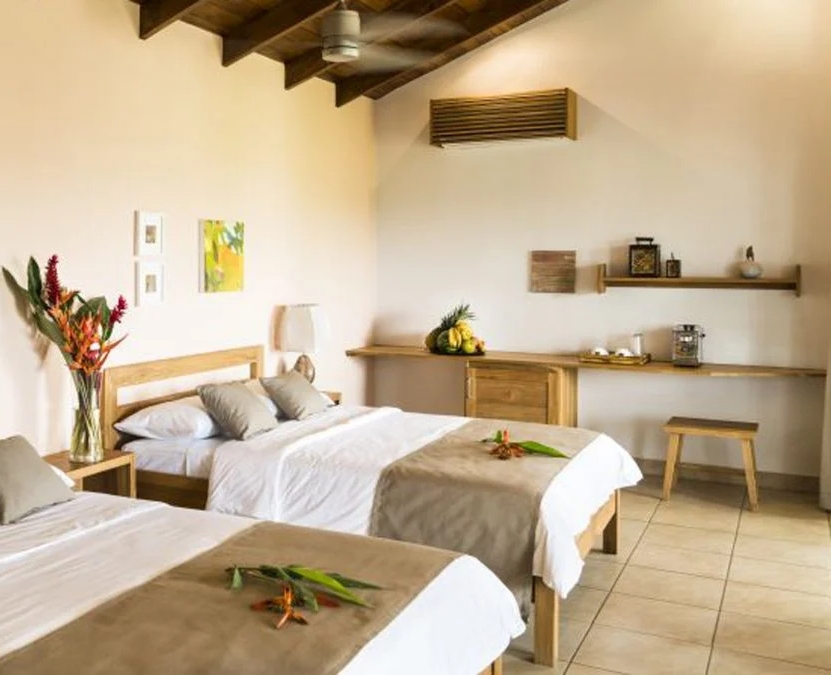 Nestled where two rivers meet the Pacific on Costa Rica’s Nicoya Peninsula, the beautifully situated boutique Lagarta Lodge offers you access to expansive beaches and lush woods. The lodge, with its 26 suites, is understated and modern in design so as to work in harmony with the natural environment. Elegant teak furniture and artwork from both Latin American and European artists adorns the walls and each suite features a private balcony which looks out over either the jungle or ocean. The Jungle Suites offer idyllic views of unspoiled nature, the Panorama Suites open up to beautiful ocean views, and the Flor Blanca Suites look out on the lush surroundings and the ocean.