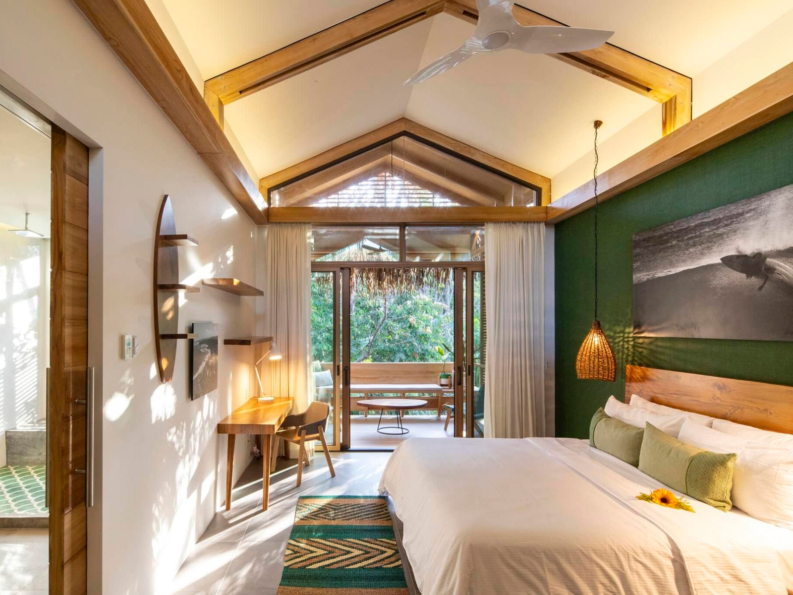 Together with a tropical personality, an earthy bohemian spirit imbues its guestrooms, whose interiors adorned with handcrafted furnishings flow seamlessly outside. Some balconies even jut towards the canopy of the thick rainforest swathing the property, home to white-faced capuchin monkeys and their giant namesake, the green iguana. Going back inside, high ceilings bring in the salty breeze and abundant sunshine.
