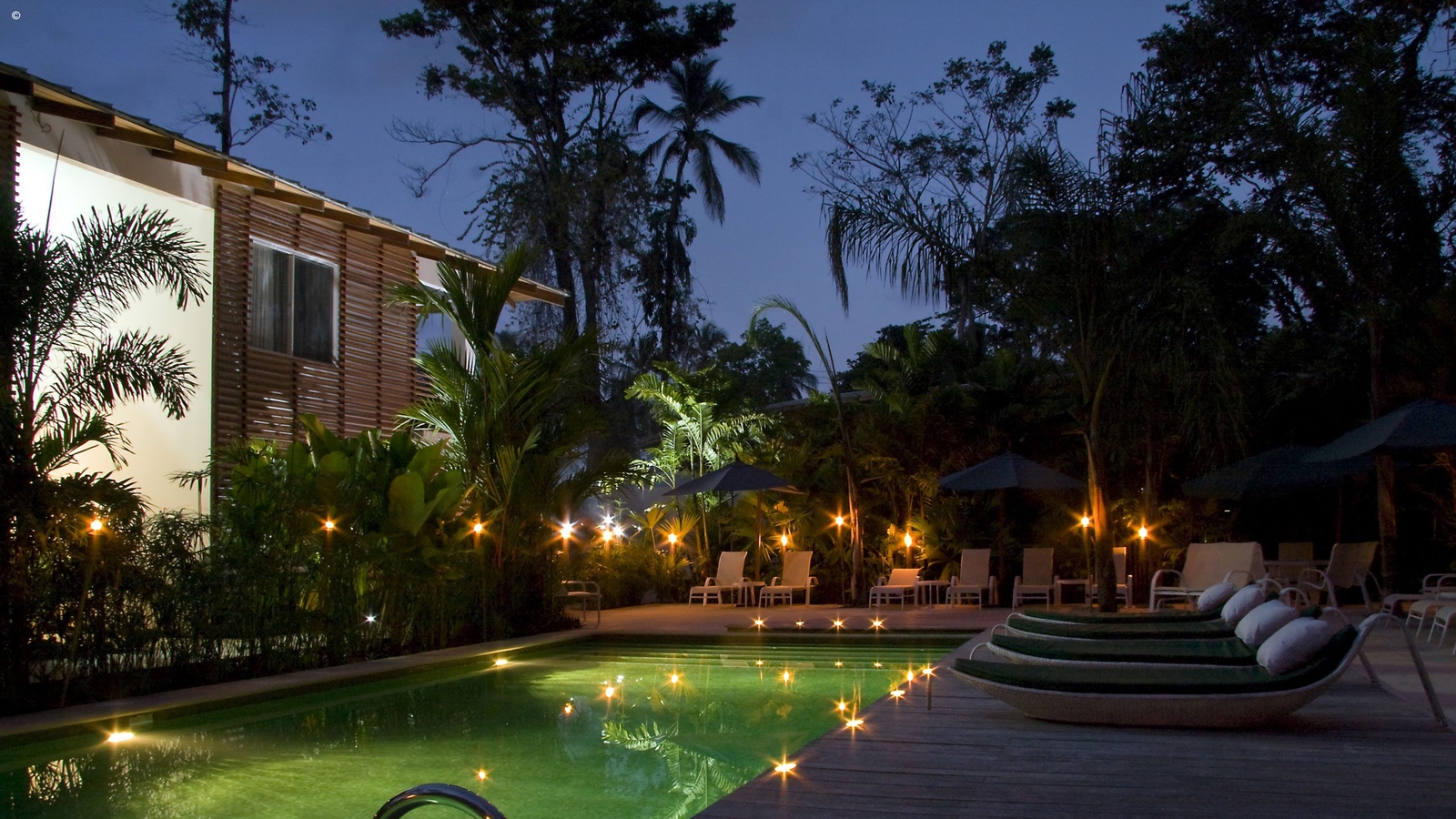 The 23 all-white, minimalist and highly smart rooms are touched with the occasional bright pillow and feature artwork, flowers, as well as plasma televisions and iPod docks. Wi-Fi runs throughout the hotel. With private patios looking onto the encroaching jungle flora, the clashing contrast of the hotel’s modernity against the wild enveloping nature is triumphant and somewhat reminiscent of the sophisticated Miami hotel style.