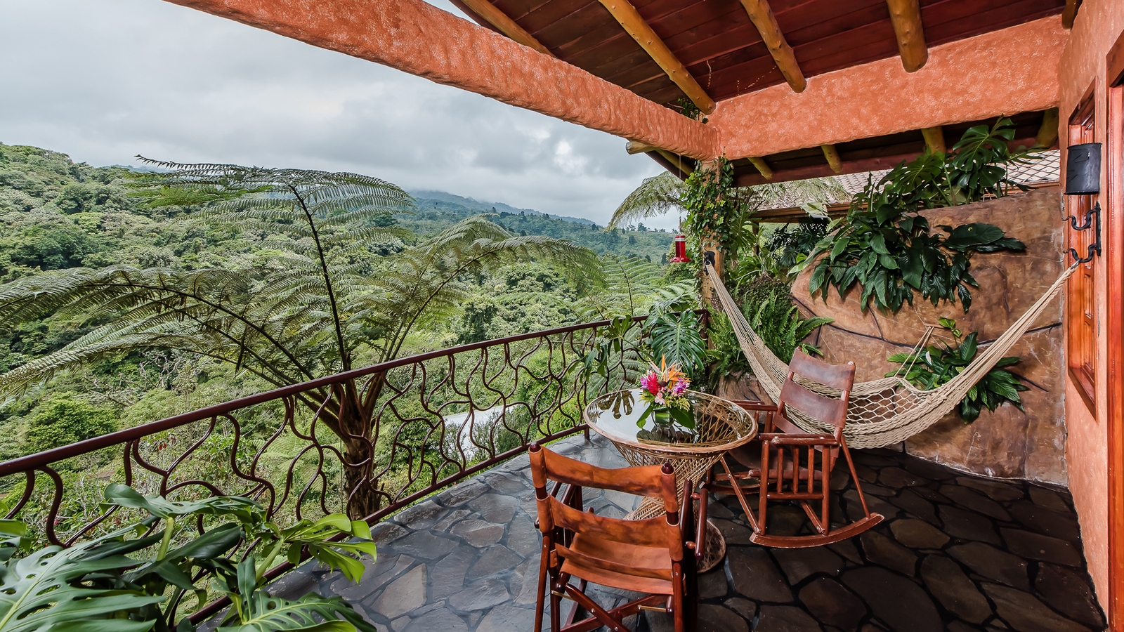 Located about an hour north of San Jose in a private eco-park and reserve, the intimate and romantic Peace Lodge enjoys a wonderfully interactive setting with nature.