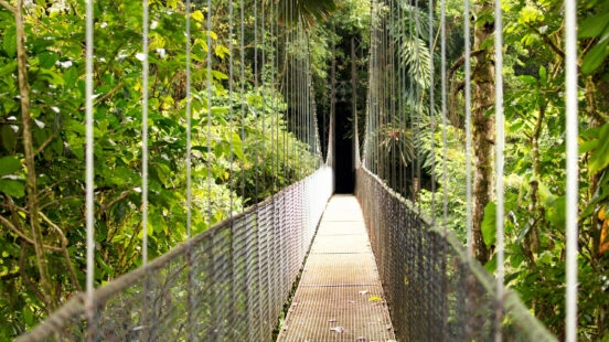Mistico Arenal Hanging Bridges Park houses a network of suspension bridges that wind through primary rainforest. Walking through them with a guide offers a photogenic way of learning about the surrounding environment. Costa Rica currently makes up 5% of the world’s biodiversity and its forests are teeming with wildlife. Many species come to life after dark, so a night walk through the hanging bridges is great for wildlife enthusiasts. There are so many different types of wildlife here, including around 2,000 species of butterflies, as well as amphibians, reptiles, mammals and some exotic flowers that only bloom at night.