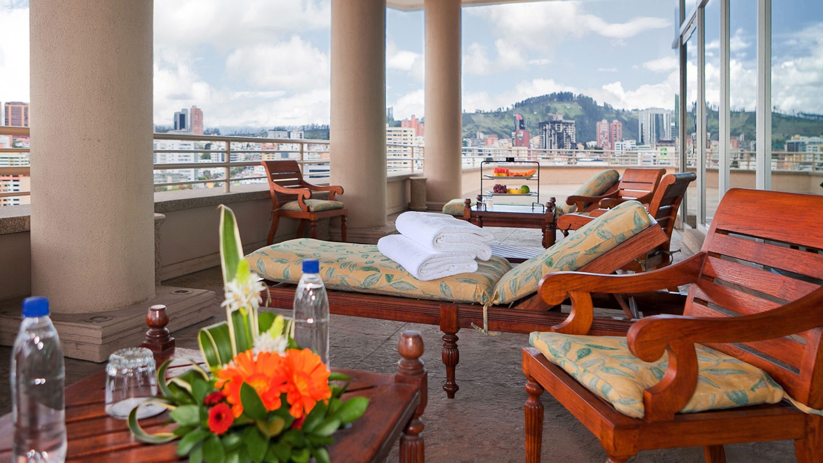 Rooms are well decorated and equipped, most with views of the city or volcano. Hotel facilities include a very large heated outdoor pool area (almost unique in Quito), four restaurants, bars, lounges and a well equipped spa.
