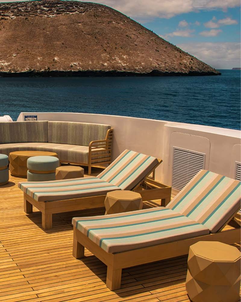 This all-suites ship is an idyllic vessel on which to explore the waters surrounding the astonishing Galápagos Islands. After spending days on land, meeting blue-footed boobies and sea lions and giant tortoises, you’ll be able to return to relax in your spacious bedroom complete with balcony and writing desk.