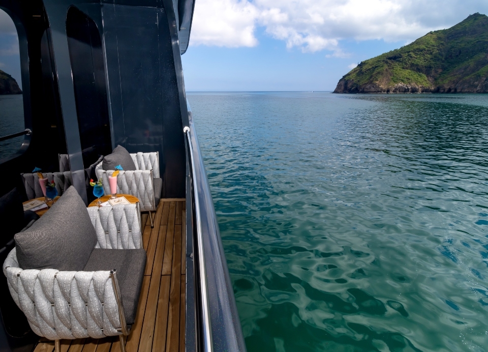 Enjoy the passing scenery of the Galapagos Islands from your balcony