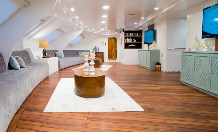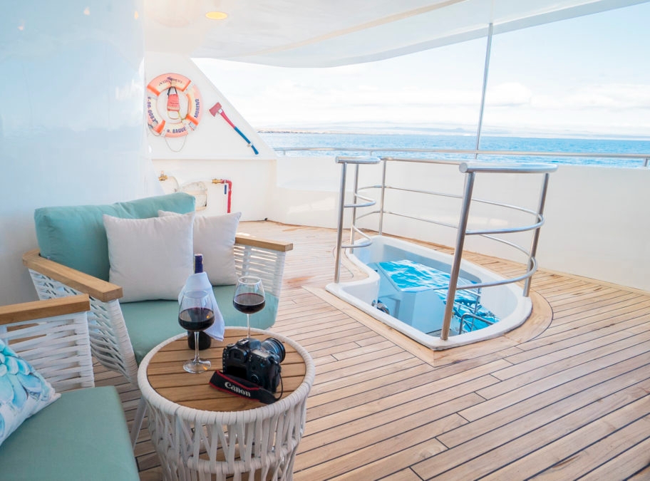 With a capacity for only 16 guests with eight very spacious cabins (the top four are 32m² in size) all with their own private balconies, this is a cruiser that prizes an intimate and comfortable Galápagos experience for its guests.