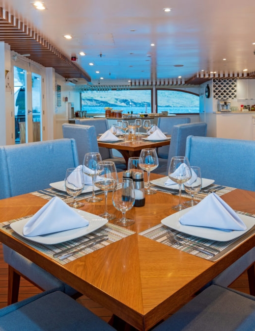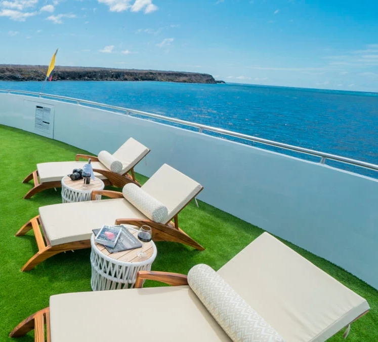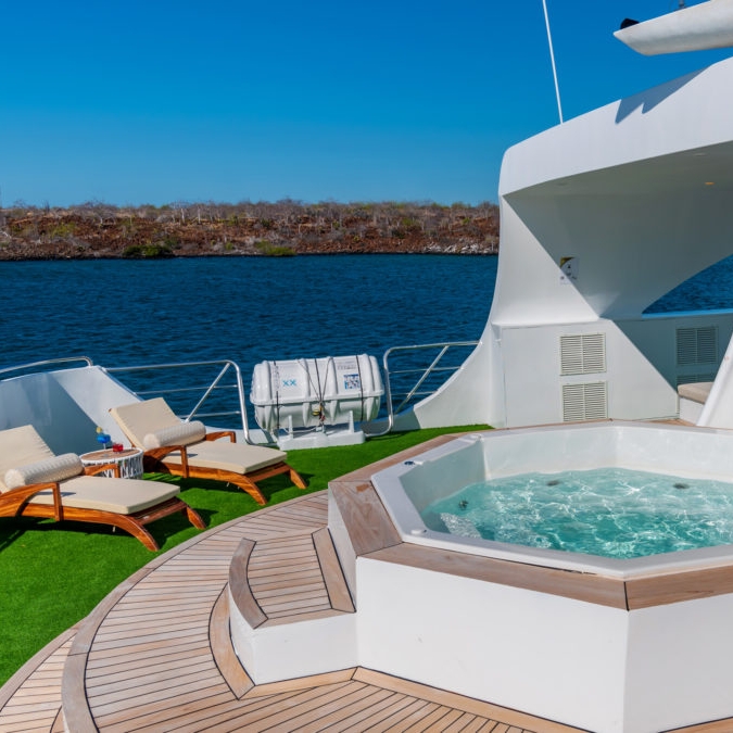 With a capacity for only 16 guests with eight very spacious cabins (the top four are 32m² in size) all with their own private balconies, this is a cruiser that prizes an intimate and comfortable Galápagos experience for its guests.