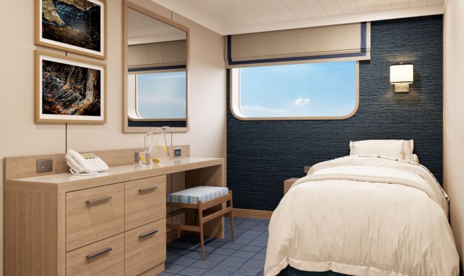The new boat is just over 70m long and features 50 Swedish-designed cabins and suites, with room for up to 90 guests. All enjoy sea views out of large windows and en-suite bathrooms. 36 cabins can be interconnected, ideal for families and small groups.