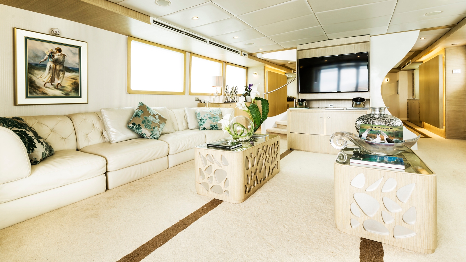 Exuding elegance, rooms are dressed in soft colours and furnishings for complete style. With four guest staterooms, two VIP staterooms and one lavish Master Suite – with private access to an outdoor lounge – your friends or family have bundles of private space to enjoy. Besides panoramic windows, each guestroom also features a private balcony for those spectacular island views.