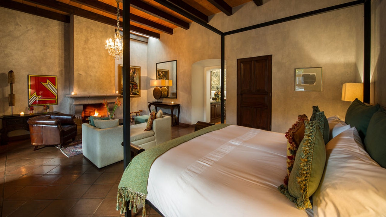 Seven rooms can be found off of two peaceful courtyards, each of which has a fireplace, ornate fabrics and rustic interiors along with modern comforts such rainfall showers and the larger suites with living areas.