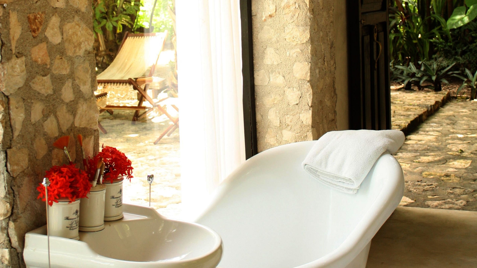 A simply delightful place to stop off for a night or two to explore the region’s Mayan ruins, or to simply relax at this rustic residence, the one room is elegant yet simple with a freestanding roll top bath, exposed beams and sparse decoration. It comes with a private terrace and you have exclusive use of the plunge pool in the courtyard.