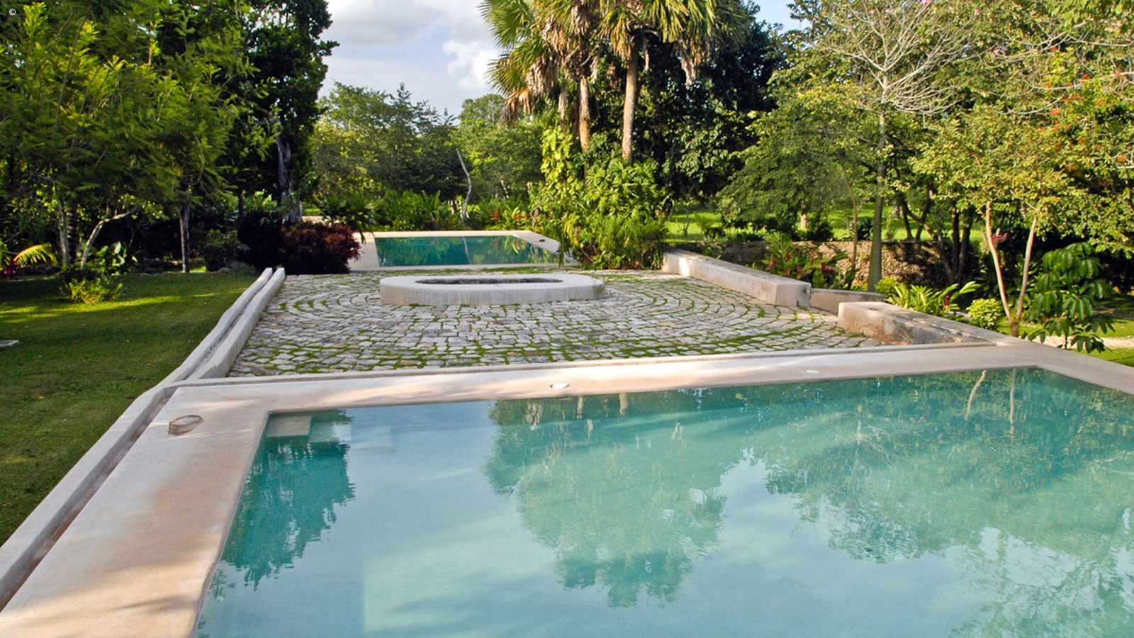 Itzincab’s lush gardens, featuring three swimming pools, envelope the property, and are home to abundant colourful bird life.